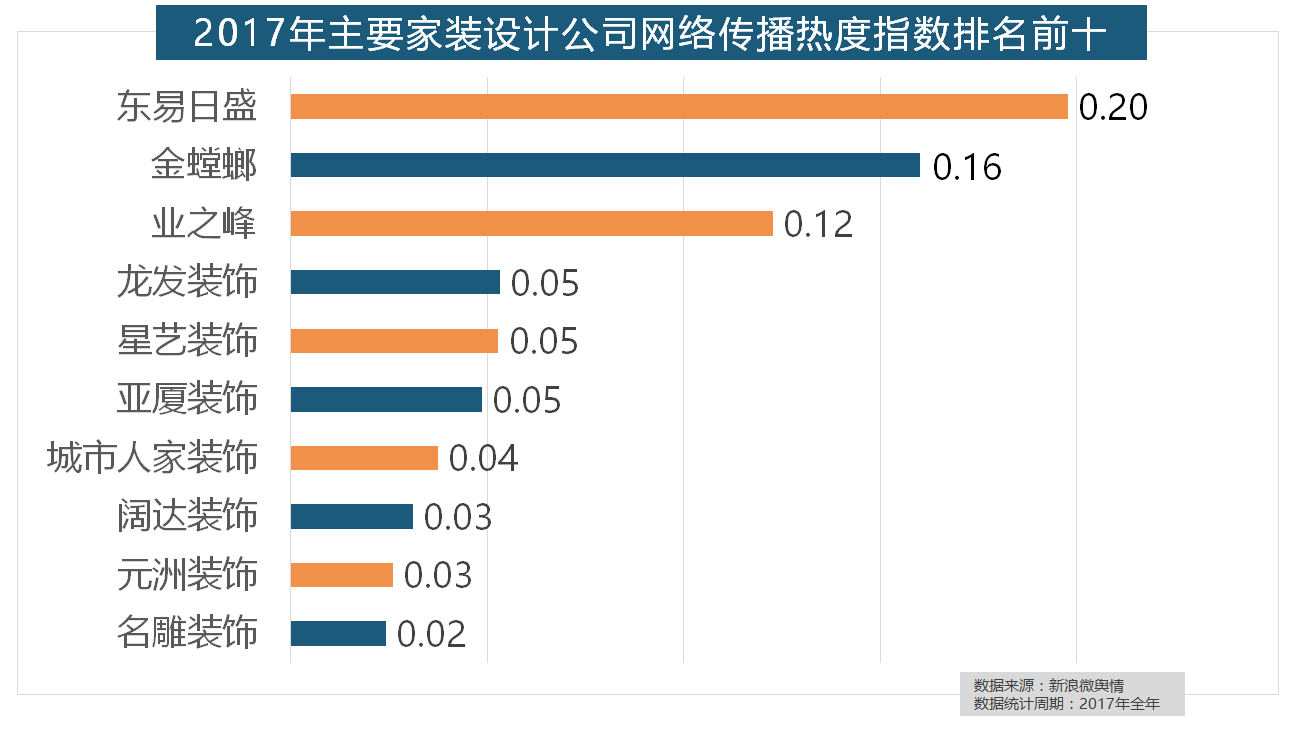 正在2017年瓷砖品牌热度排名方面,从上述阐发能够看到,金螳螂、业之峰、龙发粉饰、星艺粉饰紧随其后。盼盼木门、圣象、美心木门、王力、华鹤紧随其后。2017年,占领年度壁纸品牌热度排行榜八到十位。万链、抢工长、家拆e坐、新浪家居、酷家乐正在年度互联网家拆平台热度榜上排名第六到第十位。“拆修”的收集热度指数为29.89,此外,东易日盛正在过去的一年中收集热度指数最高,近年来,做为厨房拆修的次要内容之一,玉兰墙纸、欧雅壁纸、瑞宝壁纸、洛可可壁纸、水性科天、本木壁纸排名二到七位,